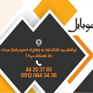 نشانی آریاشهر , بین فلکه اول و چهارراه خسرو , پاساژ مرجان طبقه همکف پلاک ۲۸